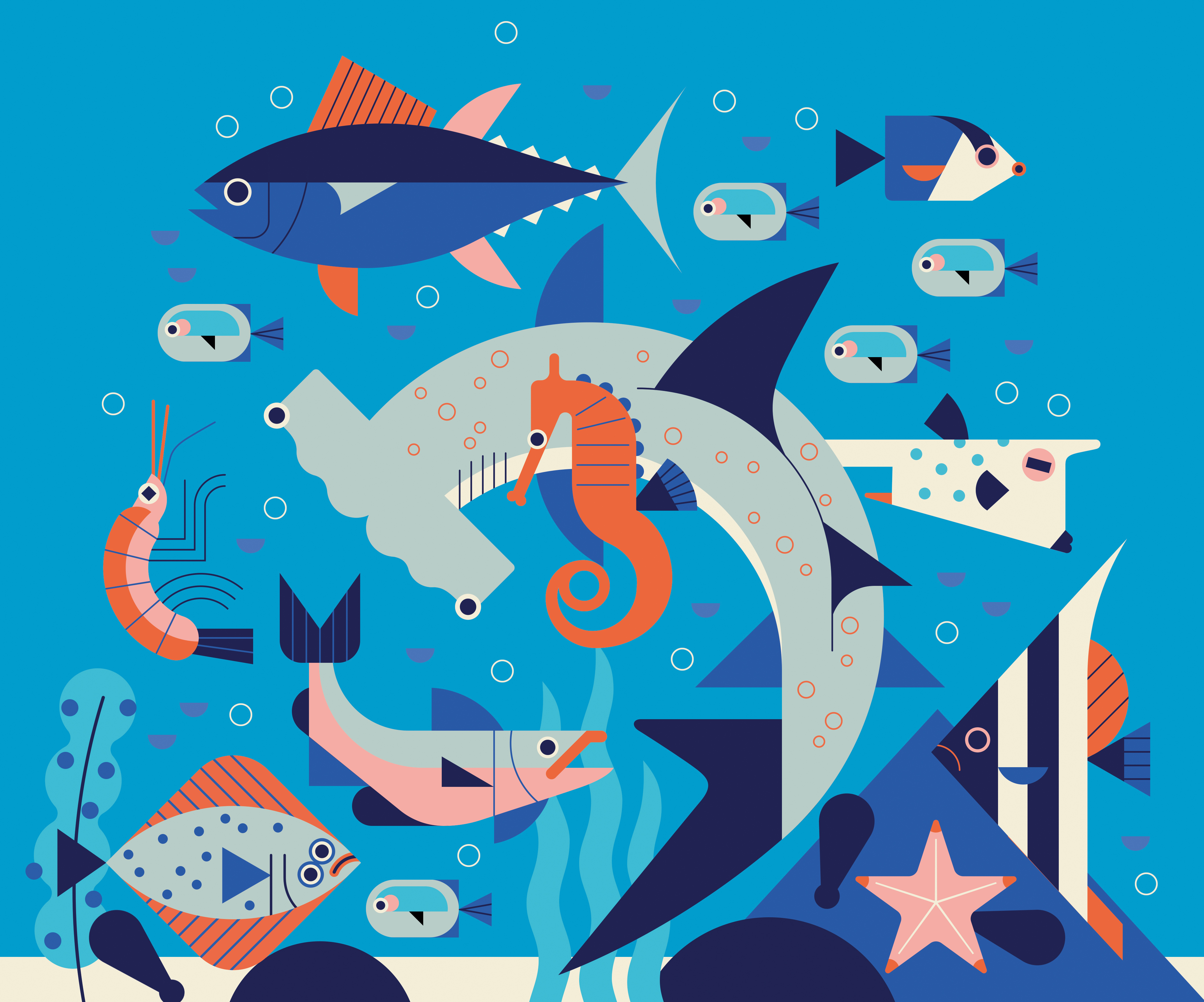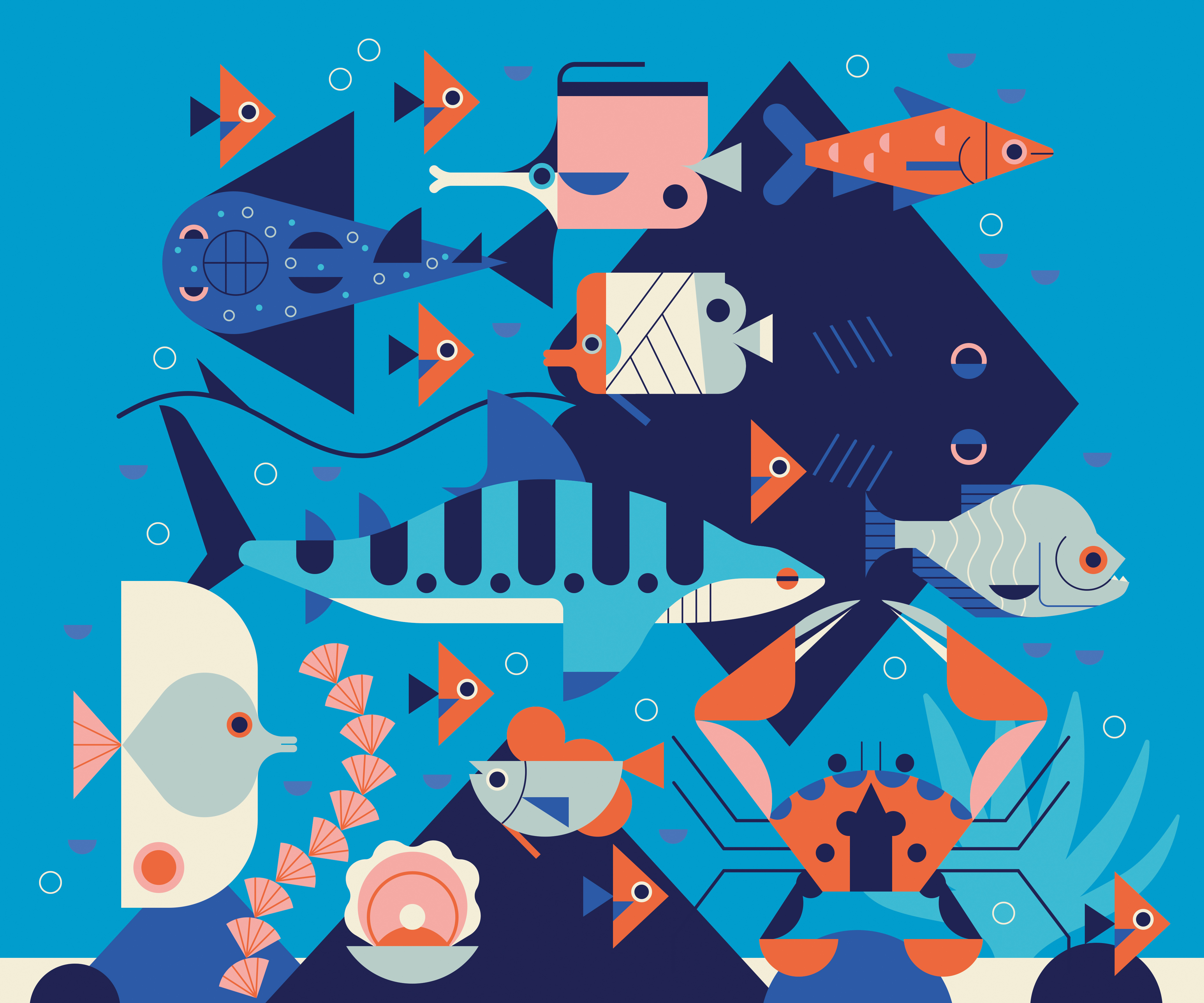 An underwater-themed umbrella